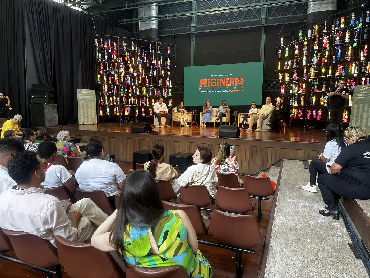 Representantes das Usinas da Paz participaram, neste domingo (9), do primeiro dia da programação do Regenera Festival. O evento, realizado no Teatro Estação Gasômetro, no Parque da Residência, em Belém, visa promover debates sobre soluções criativas e regenerativas para o enfrentamento à crise climática, a partir da inclusão social, economia circular, design, cultura e transformação socioambiental.