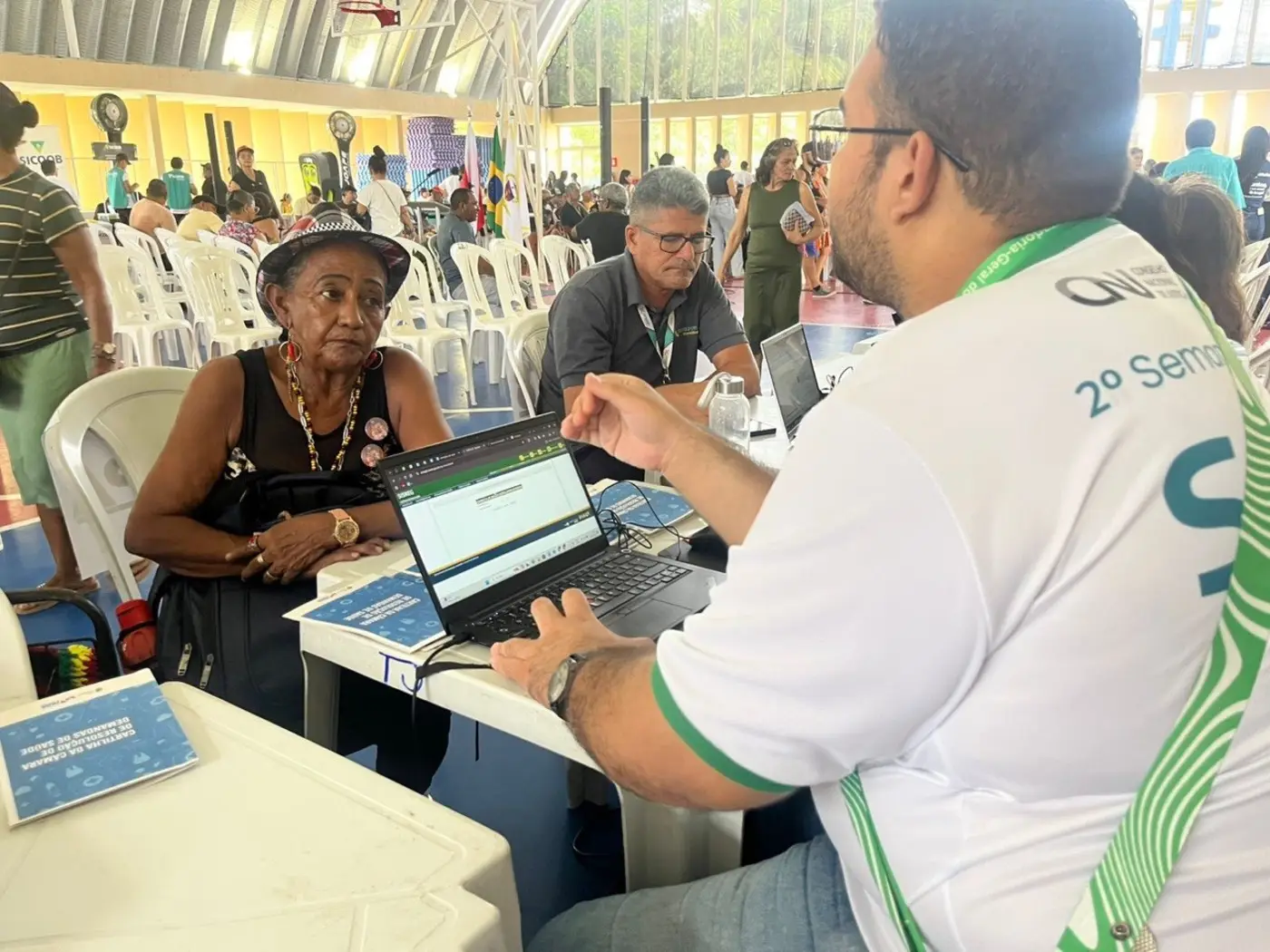 A Procuradoria-Geral do Estado (PGE) participou da programação como instituição parceira, e prestou orientações e informações ao público sobre a atuação da Câmara de Resolução de Demandas de Saúde (CRDS), com atendimento realizado por assistente social e estagiário do setor, em articulação com outros serviços jurídicos e sociais presentes no evento.